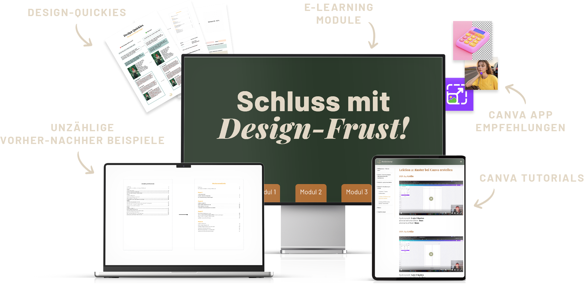 In meinem Programm Schluss mit Design-Frust lernst du, wie du selber professionelle und ästhetische Designs mit Canva erstellst.